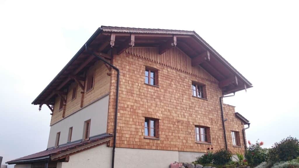 Unsere Fassaden sind mehr als nur schützende Schichten – sie sind Ausdruck von Eleganz und Individualität. Von edlen Holzschindeln bis zur zeitlosen Lärchenschalung oder modernen Fassadenplatten, wir bieten eine breite Palette von Materialien und Designs, die es ermöglichen, eine Fassade zu gestalten, die Ihre persönlichen Vorstellungen perfekt widerspiegelt.