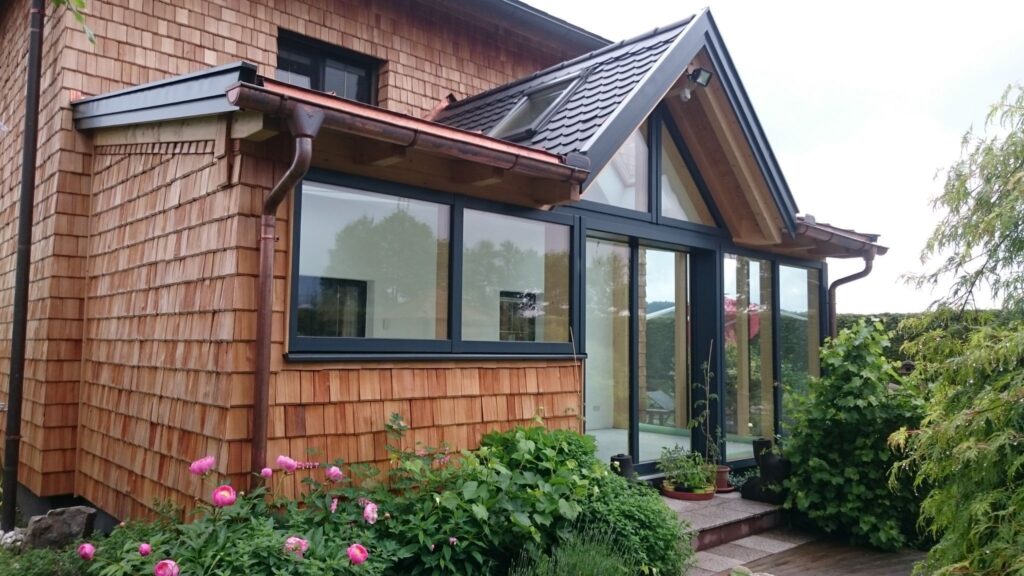 Ein Wintergarten bringt nicht nur reichlich Licht und Sonne in Ihren Wohnraum, sondern schafft auch ein ganz besonderes Ambiente. Ob modern mit Aluminiumverkleidung, traditionell aus wintergeschlägertem Mondphasenholz, ausgestattet mit einem intelligenten Beschattungssystem oder einem Glasdach – wir entwerfen und bauen Ihren persönlichen Sonnenraum. Jeder Wintergarten wird individuell gestaltet, um all Ihre Wünsche und Vorstellungen zu erfüllen.